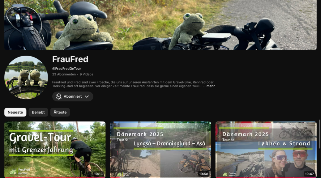 jaja, lang ist es her, dass hier etwas passiert ist – dafür ist bei uns viel passiert. FrauFred und ich haben das Fahrrad fahren für uns entdeckt: egal ob Trekking, Gravel oder Race – wir lassen uns gerne die frische Luft um die Nase wehen. Natürlich darf da dann auch die filmische Dokumentation nicht fehlen – diese gibt es jetzt auf YouTube: https://youtube.com/@fraufredontour